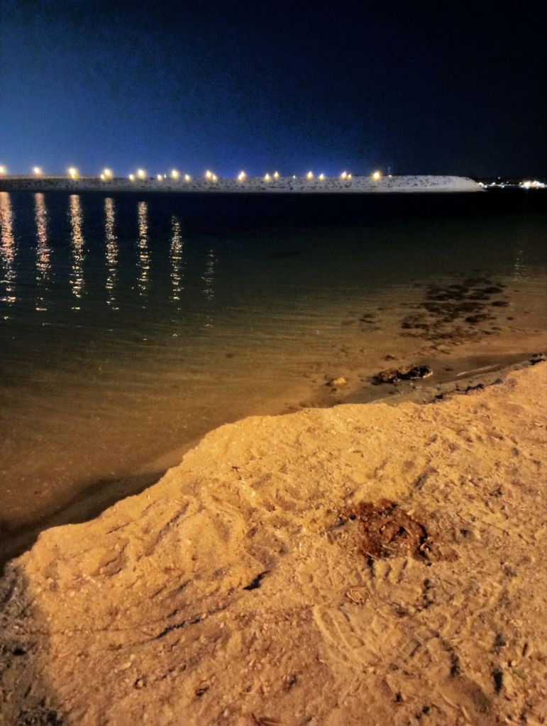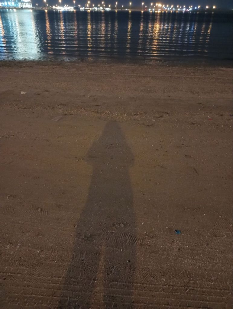 Sitting on sand by the sea shore