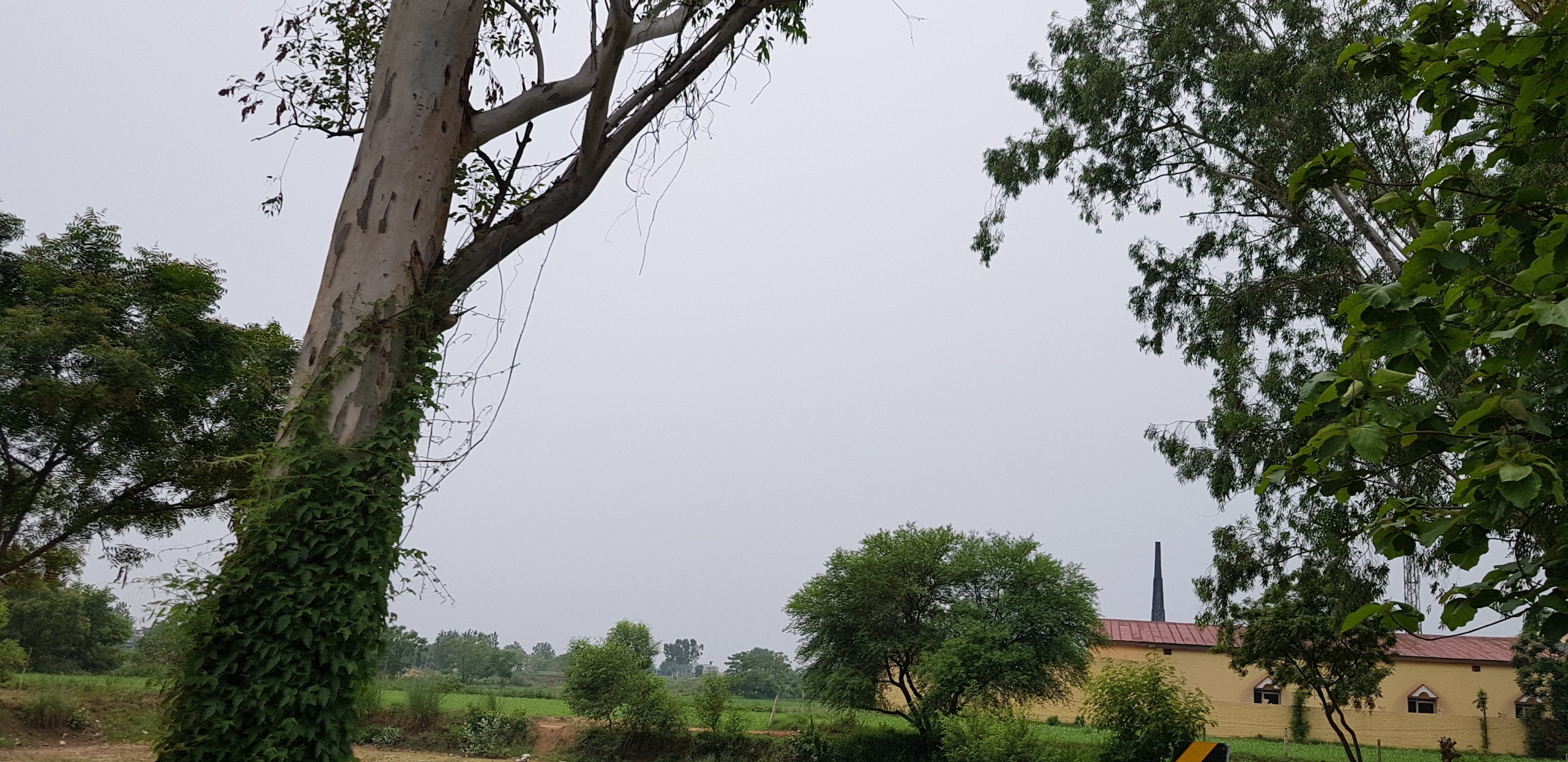 Trees reflecting in rain water